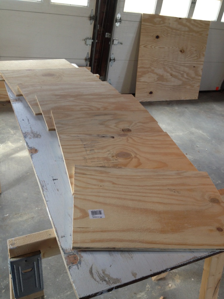 Step 1: get a big old 4×8′ piece of plywood and cut it up into a bunch of squares. Measuring helps, but for the adventurous types is optional.