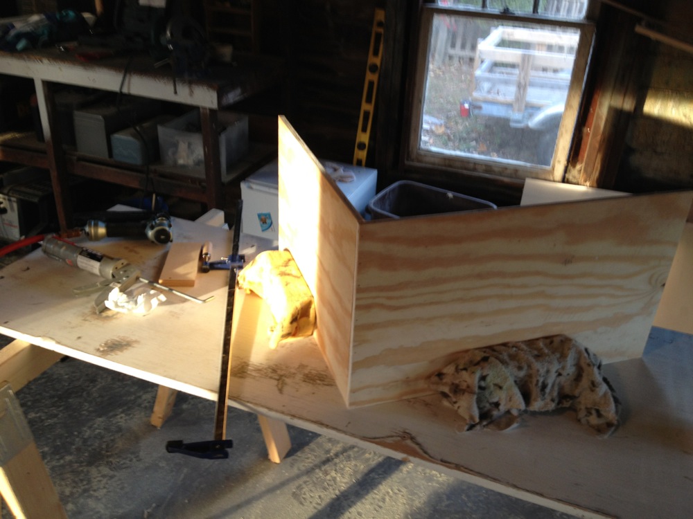 Make a back for the thing to nail into the studs of the target wall. Oh, did I mention to leave a recess in the back of the box to inset the back in? Go back and do that, too.